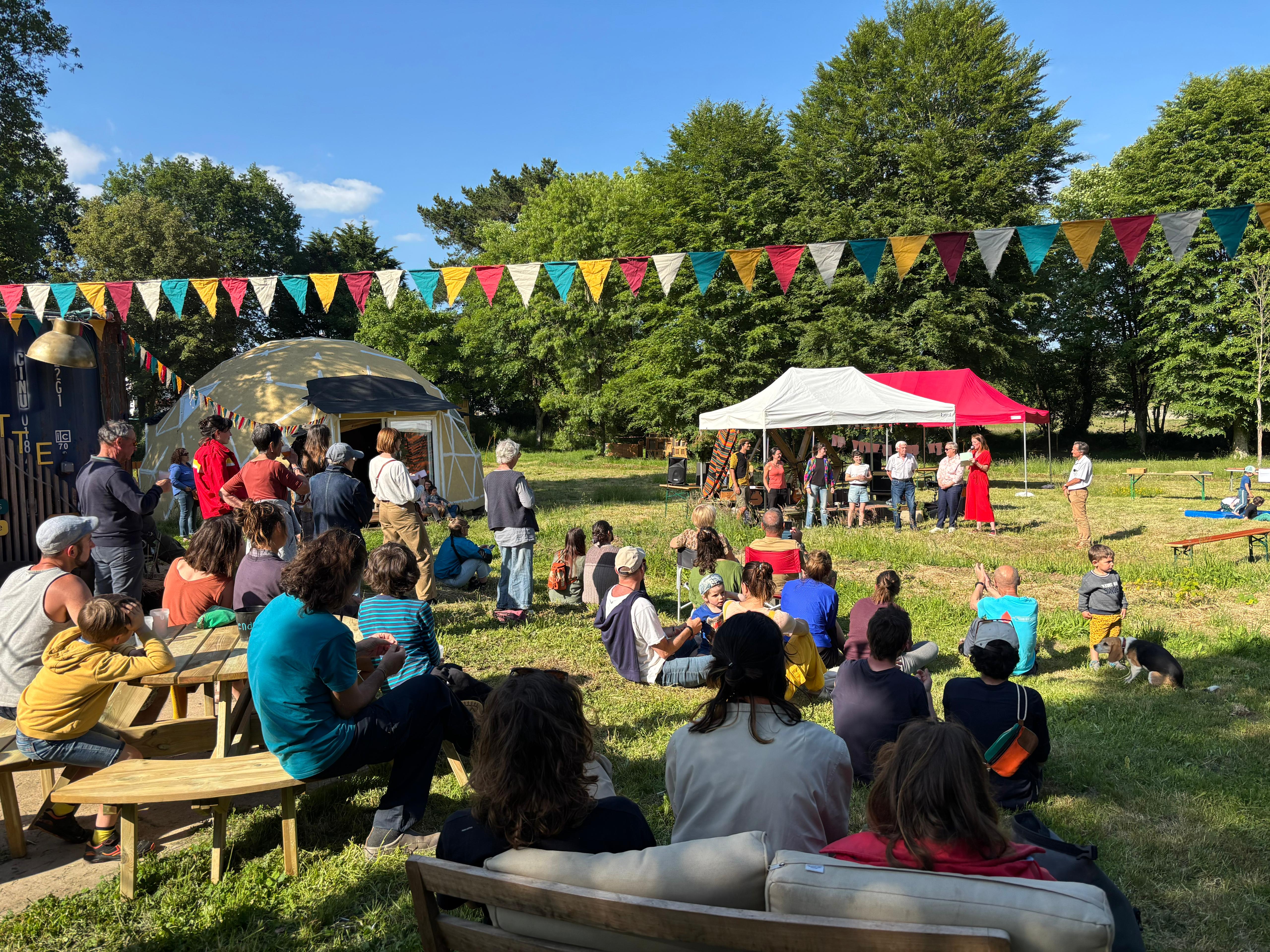 Zur Ausstattung gehören Gemeinschafts-Außenküchen, warme Duschen, hochwertige Trockentoiletten, eine lebendige Guinguette mit kulturellen Veranstaltungen, fahrradfreundliche Einrichtungen sowie eine 50 m² große geodätische Kuppel als Treffpunkt.