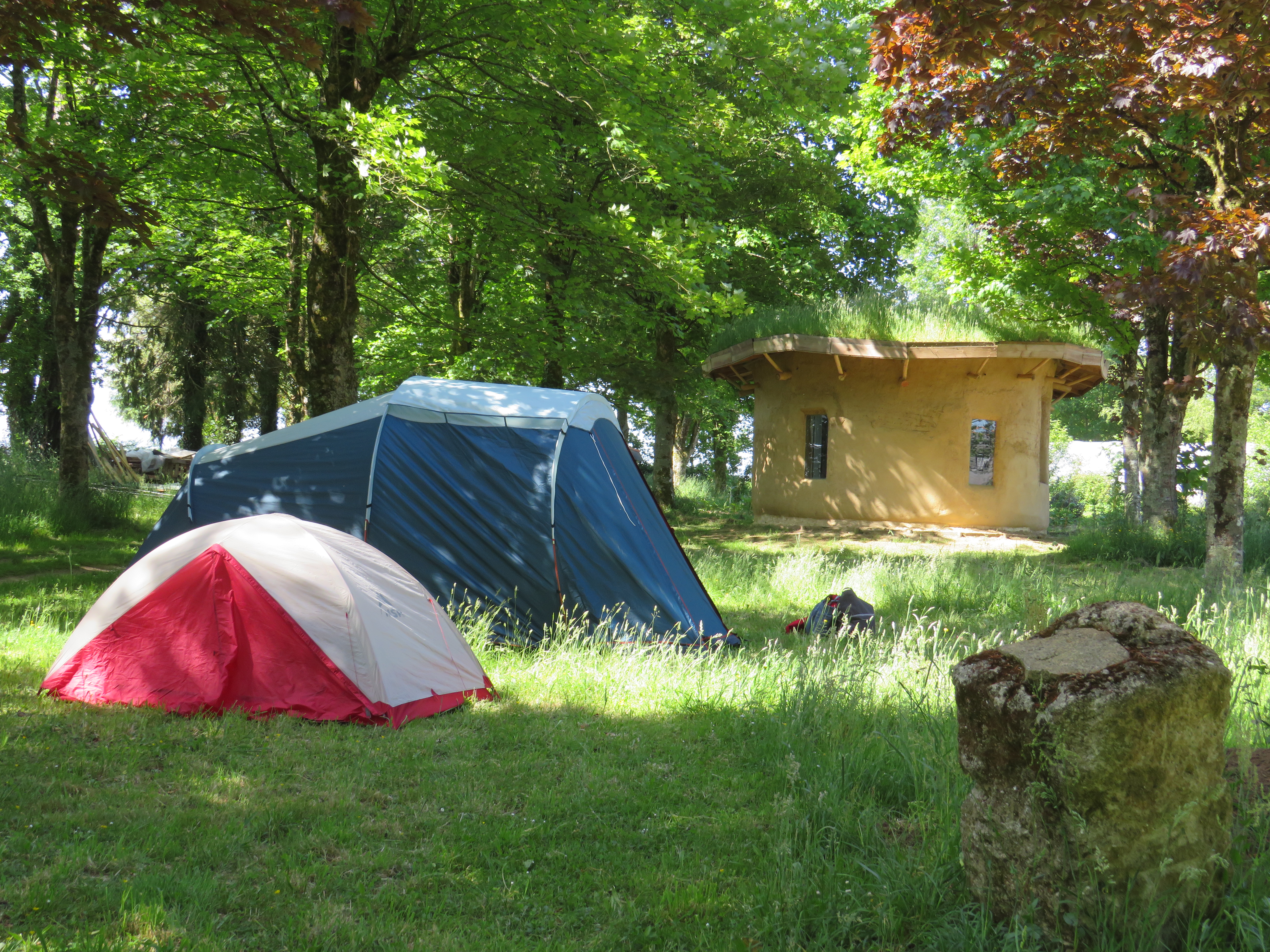 Kerbouzier bietet Stellplätze für Zelte, Vans und Tipis auf einem 1,4 Hektar großen, bewaldeten Gelände.