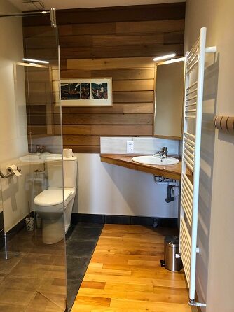 Das kürzlich restaurierte Gästezimmer verfügt über ein eigenes Badezimmer und WC. Zugänglich für Personen mit eingeschränkter Mobilität.