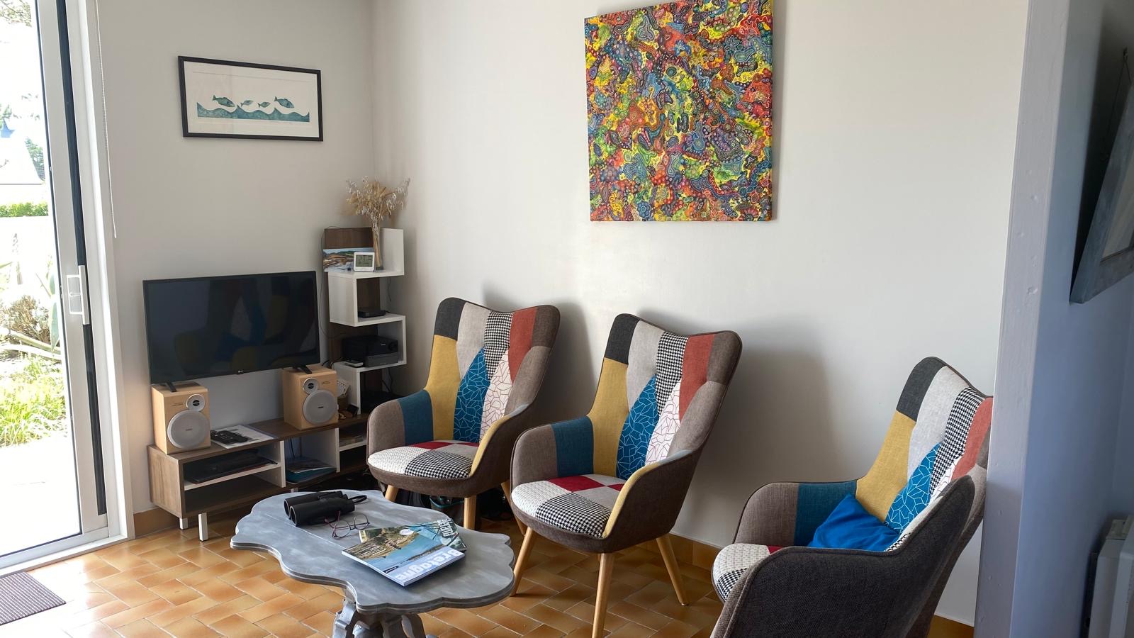 Das helle Haus liegt an der Pointe de Trévignon in Trégunc: Drei schöne Schlafzimmer und ein großer Garten von 1500 m² Fläche.