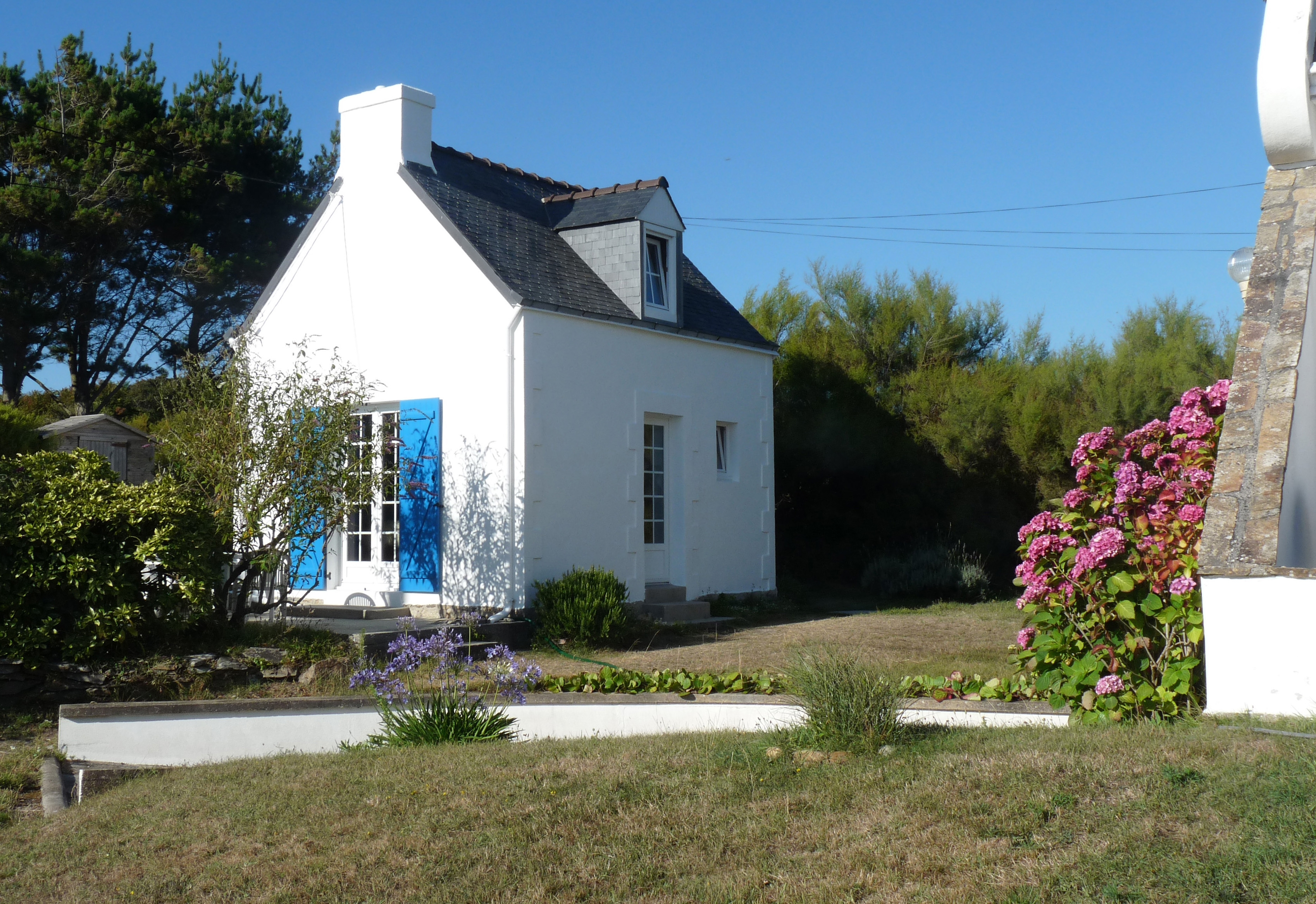 Dieses hübsche kleine Fischerhaus mit blauen Fensterläden liegt in Névez, dem Dourveil-Strand gegenüber. Es ist perfekt für einen Urlaub zu zweit.