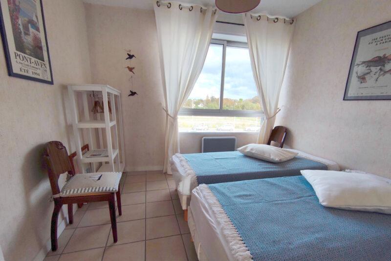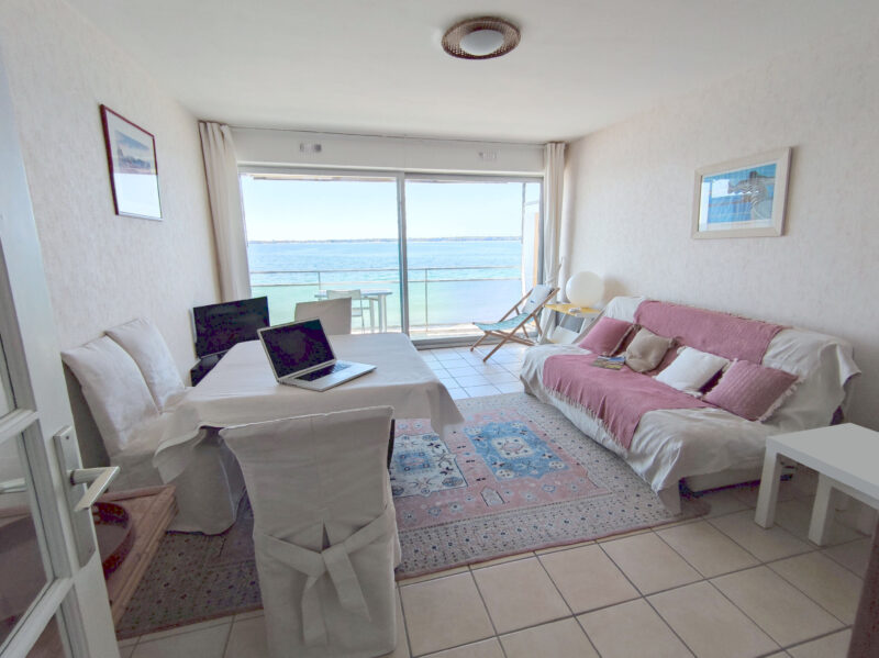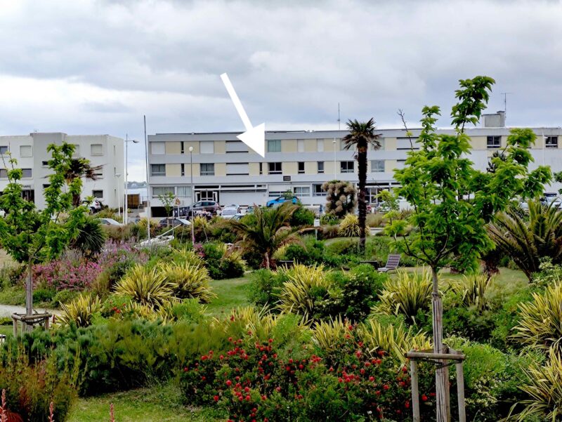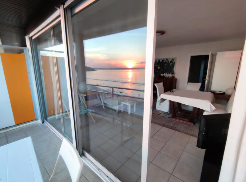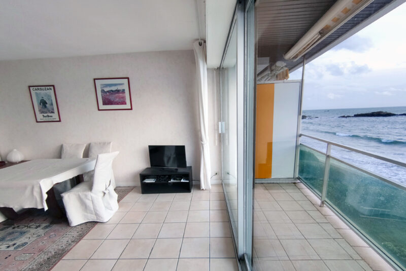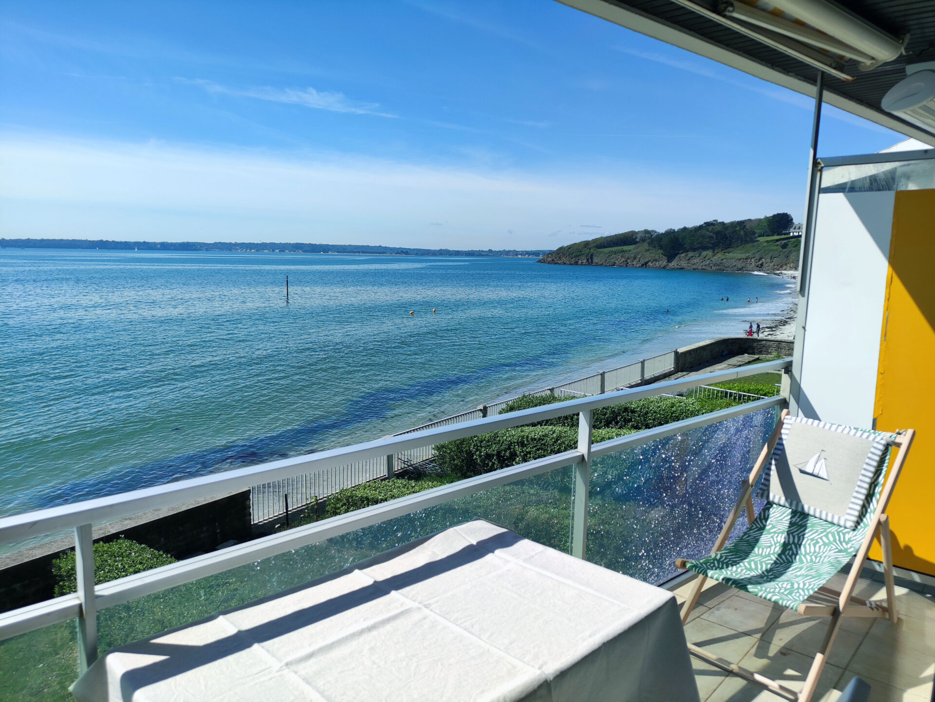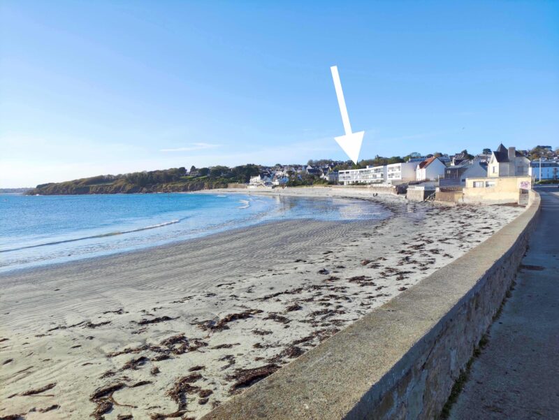 Wohnung mit herrlichem Blick auf die Bucht und den Strand Sables Blancs im 1. Stock einer kleinen Residenz, am Meer gelegen. Gegenüber befindet sich das Thalassotherapiezentrum von Concarneau.