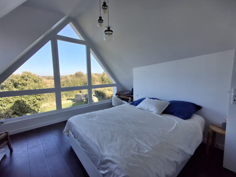 Das Haus liegt 150 m von den schönen Stränden von Trévignon entfernt und ist gut gelegen, in der Nähe von Wanderwegen und den Teichen von Trévignon. Es verfügt über eine Terrasse und bietet von der oberen Etage aus Meerblick.