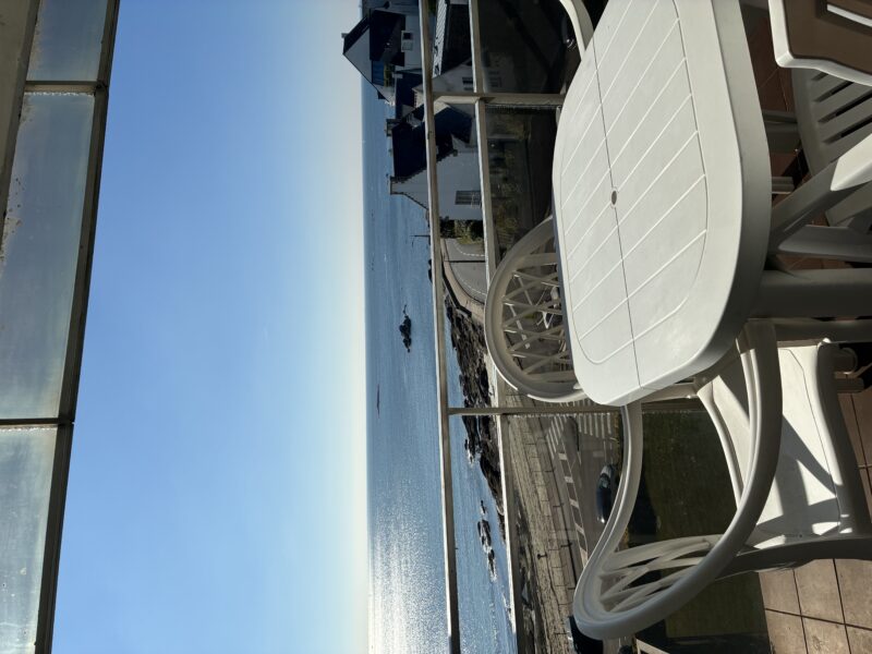 Terrasse und Gartenmöbel. Genießen Sie die herrliche Aussicht und den freien Blick auf das Kommen und Gehen der Fischer- und Sportboote.