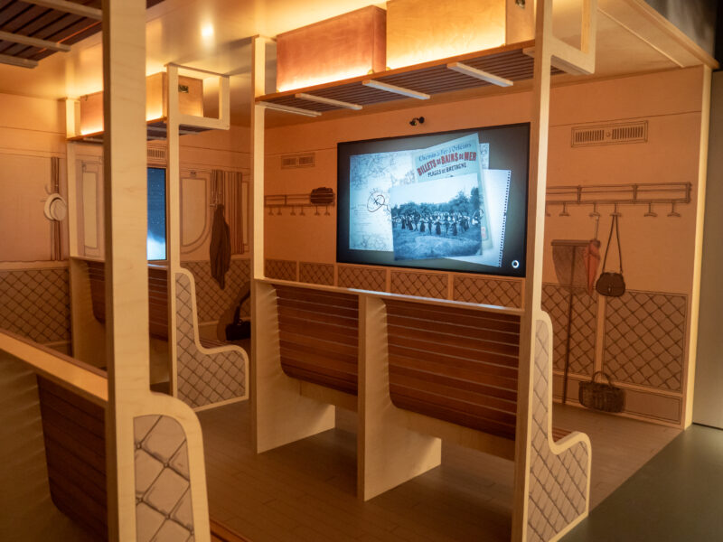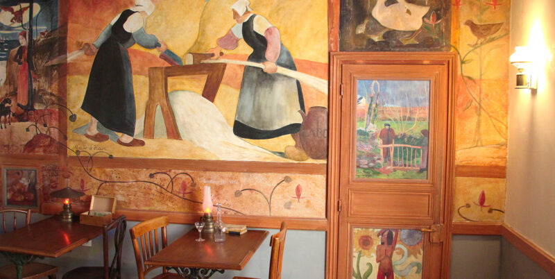 The Maison-Musée Gauguin, in Clohars-Carnoët, is a historical reconstruction of the Buvette de la Plage. Sound creations, a play of light and new staging allow visitors to relive the atmosphere of 1890. In autumn 1889, Paul Gauguin, Meijer de Haan, Paul Sérusier and then Charles Filiger settled in Le Pouldu at the Buvette de la Plage run by Marie Henry. During the winter, these painters decorated the walls, ceiling, doors and windows of the dining room.