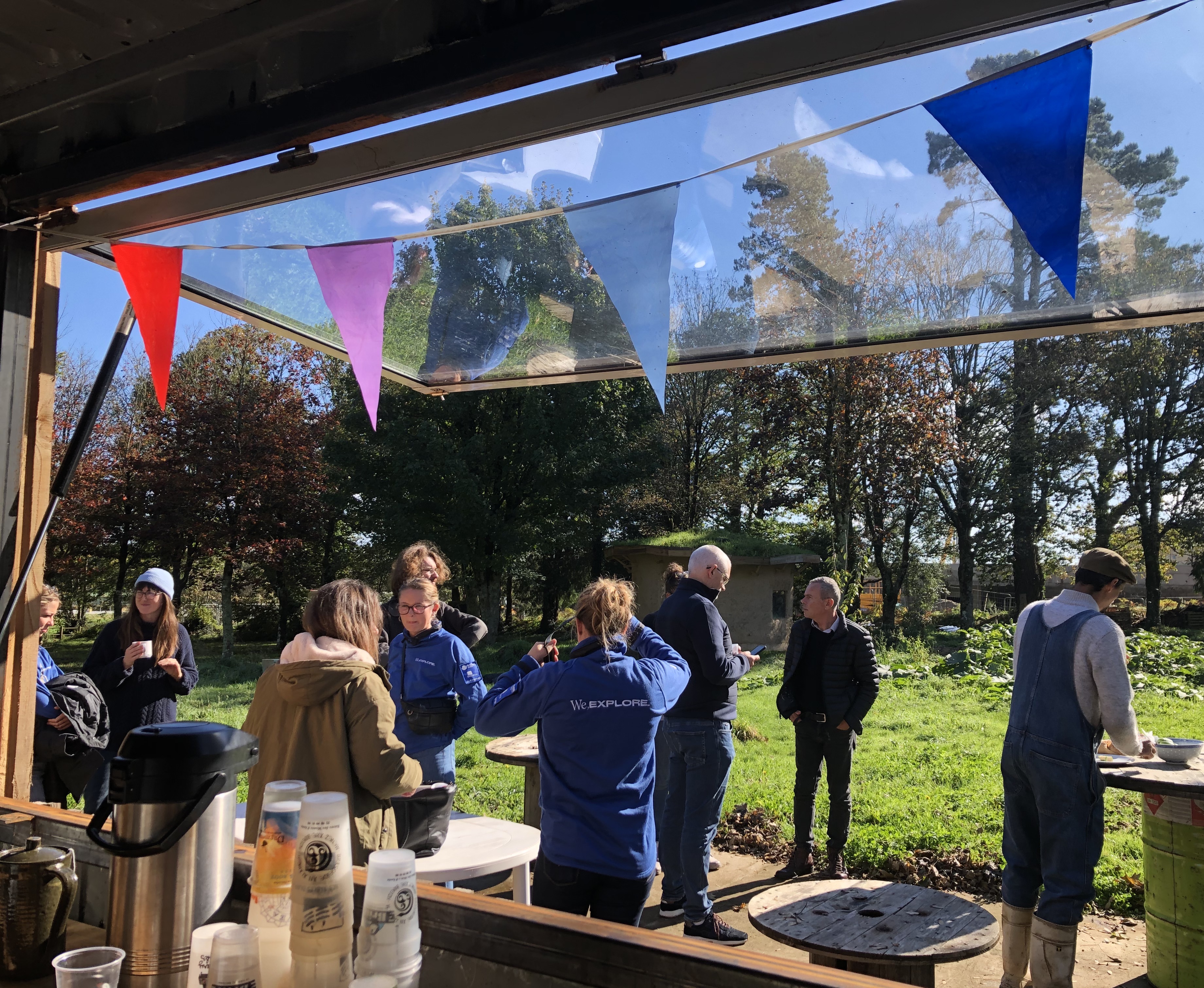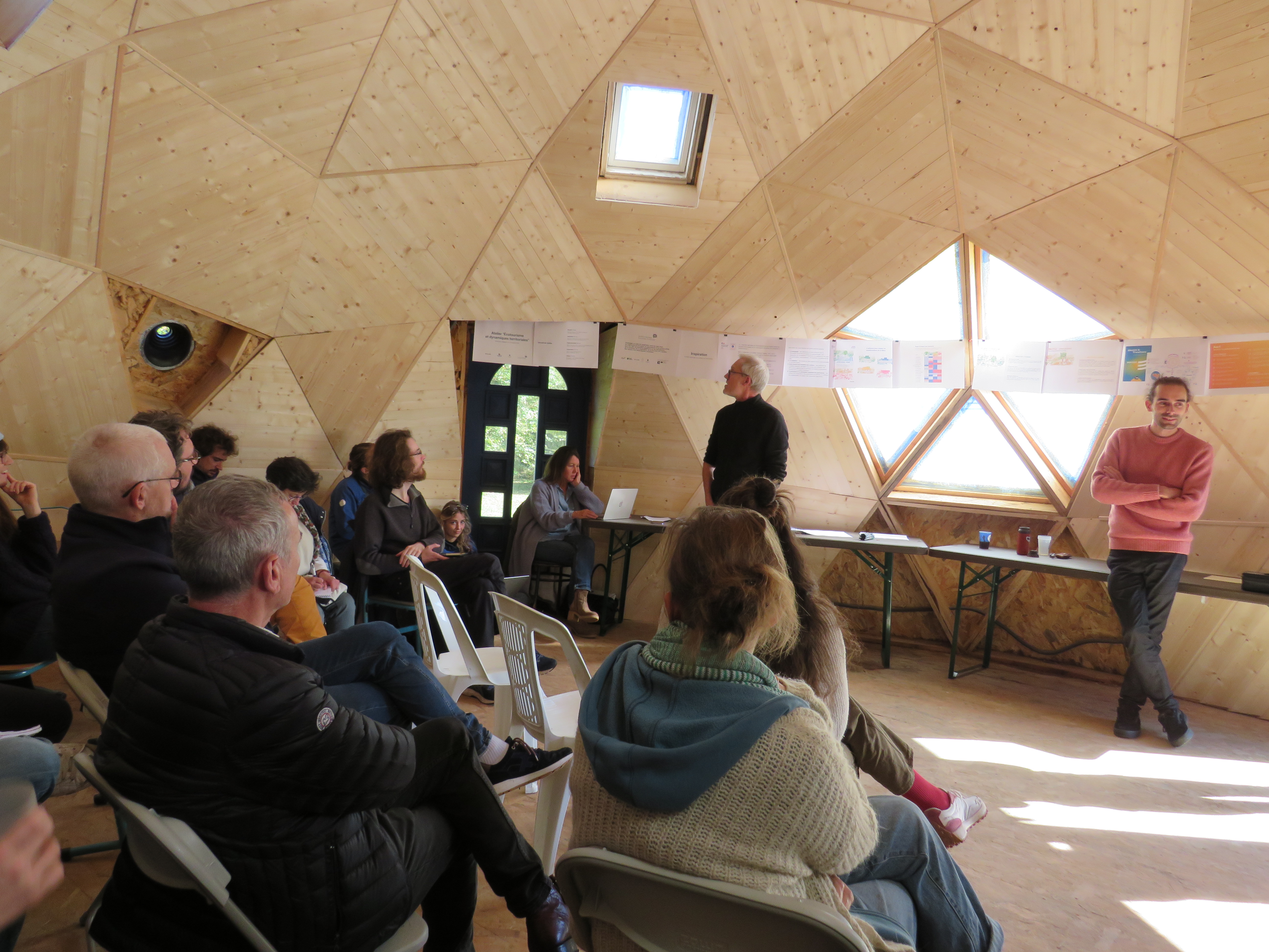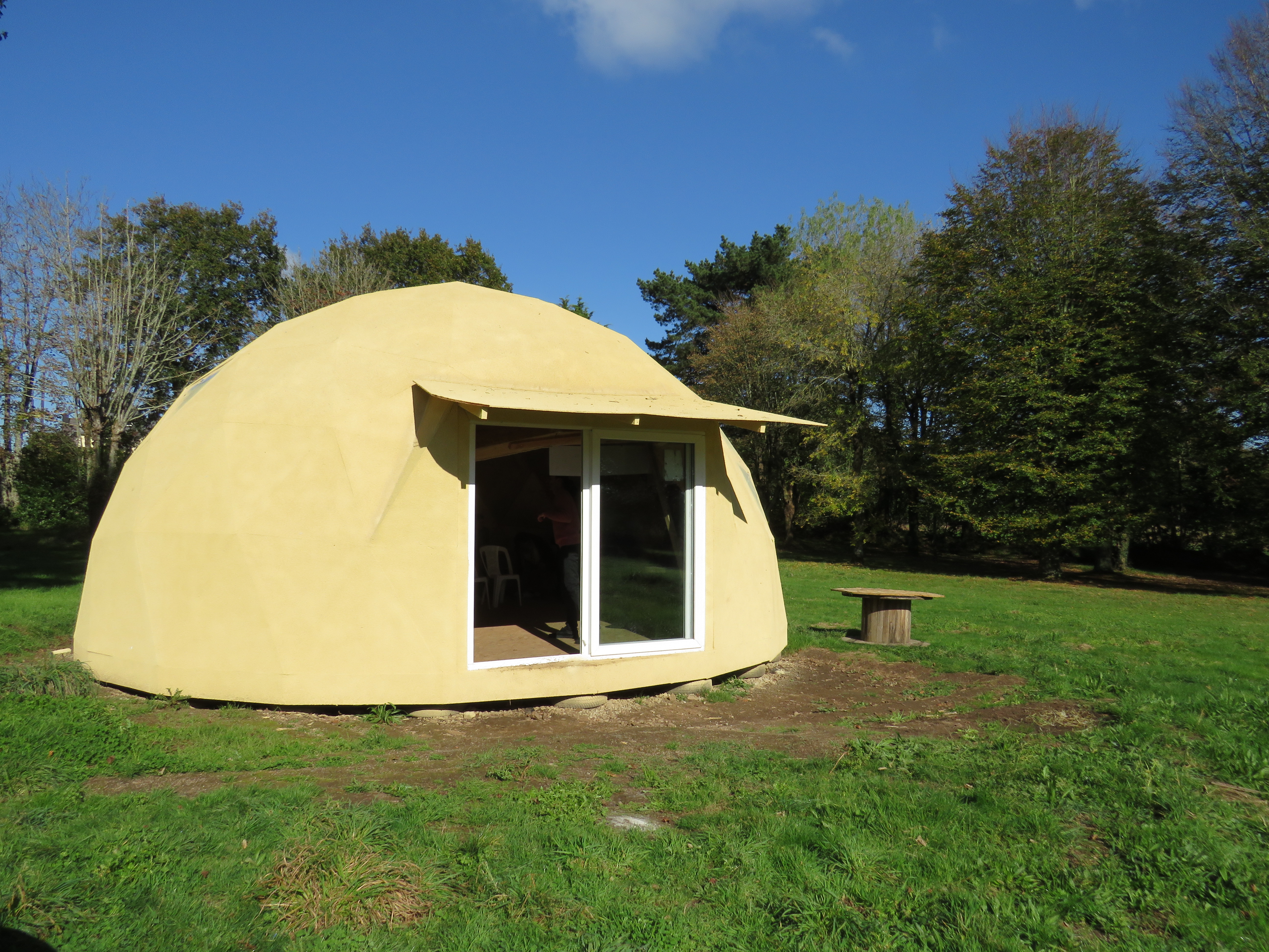 terrain arboré, d’un magnifique dôme géodésique comme espace commun, de douches chaudes, de