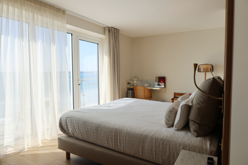 Hôtel les pieds dans l’eau avec vue sur l’océan et accès direct à la plage de sable fin. Décoration contemporaine.